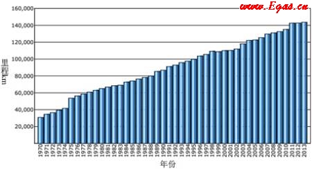 圖6 EGIG歷年管道總里程