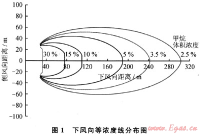 上述方程采用數(shù)值積分方法聯(lián)立求解,其計算程序具有很好的收斂精度。本文建立的計算程序與DEGADIS通用計算程序?qū)Ρ?,其計算精度符合很好。利用建立的程序計算得到濃度分布中的擴(kuò)散參數(shù),進(jìn)而求出下風(fēng)向的濃度分布和下風(fēng)向擴(kuò)散距離。