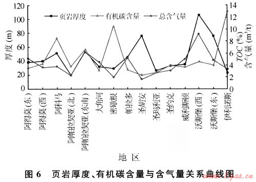 需要指出的是,頁巖有效厚度的下限不是一個固定值,其隨著頁巖氣藏鉆、完井技術的進步而變化。北美在頁巖氣藏開發(fā)的早期是打直井,當時確定的頁巖有效厚度下限值為30m。目前,由于水平井鉆井技術和水力壓裂、分段壓裂等完井技術的成功應用,頁巖有效厚度下限值已降至10~15m。將來在技術進一步提高、開發(fā)成本不斷降低的情況下,只要是在技術允許范圍內(nèi)的頁巖厚度都會是有效頁巖厚度[2]。