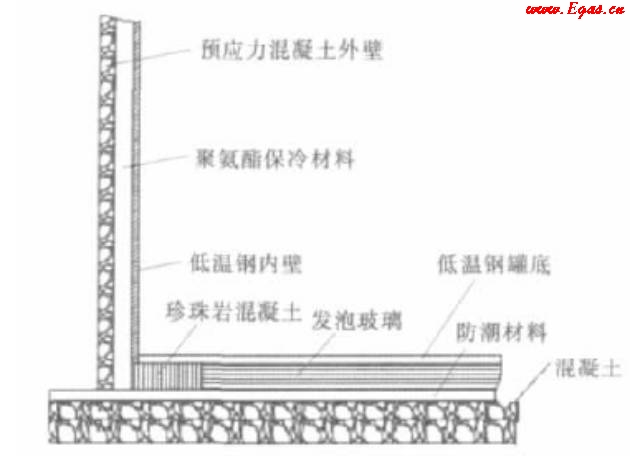 內(nèi)罐壁要求耐低溫,一般選用9Ni鋼或鋁合金等材料,外罐壁為預應力鋼筋混凝土。