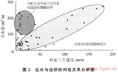 生產(chǎn)數(shù)據(jù)統(tǒng)計結果顯示,澀北氣田的氣井普遍出砂[6~7],沉砂高度越大的井,對應的累計產(chǎn)氣量越低,累計出水量也越大,表明出砂影響了氣井的開采效益,出水將加劇出砂(圖2)。