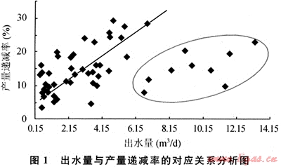 出水增大儲層內(nèi)滲流阻力和井筒壓力損耗,影響氣井的產(chǎn)能(圖1)。在氣井產(chǎn)能評價時,必須考慮出水對產(chǎn)能的影響。對一部分井進行了不同開采階段的多次系統(tǒng)試井,產(chǎn)能方程研究表明,氣井的無阻流量隨氣井出水量的增加而降低。但同時由于地層能量下降、氣井出砂等因素也會降低氣井產(chǎn)能,僅根據(jù)目前系統(tǒng)試井測試數(shù)據(jù)還不能判斷出水對氣井產(chǎn)能的降低幅度。