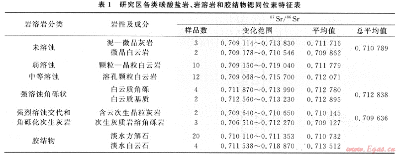 包括未溶蝕的正常海相泥-微晶灰?guī)r和薩勃哈環(huán)境的微晶白云巖,此兩類樣品的分析結果,主要用作為代表地層鍶同位素背景值和描述與對比巖溶巖系溶蝕過程中鍶同位素變化規(guī)律的參照物。