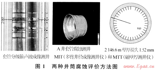 腐蝕評(píng)價(jià)方法主要有兩種:MIT和MTT測(cè)井、套管分級(jí)箍聲波成像測(cè)井(圖1)。