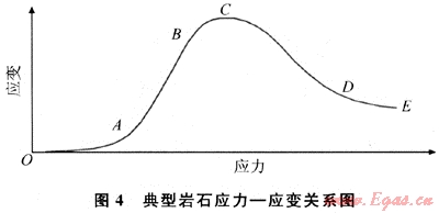 3是采用三軸巖石力學測試系統(tǒng)得到的巖石應力-應變關系曲線。從圖3-a可以看出:在應力增大的初始階段,巖石發(fā)生的變形較大,有一定軟塑性變形,隨著軸向應力增大(超過30MPa),逐漸過渡到穩(wěn)定的彈性變形階段,超過彈性極限后,巖石進入塑性變形階段,最終破壞失穩(wěn)。從圖3-b則可以更明顯地看出巖石在圍壓增大的初始階段變形較大,整個變形過程不是線彈性變形過程。
