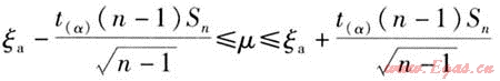 根據(jù)數(shù)理統(tǒng)計定理,取自正態(tài)總體的子樣ζ,其子樣均值ζa、子樣方差Sn2、總體均值μ、總體標(biāo)準(zhǔn)差Sn構(gòu)成統(tǒng)計量A,A是自由度為n-1的t變量,它服從t(n-1)分布。