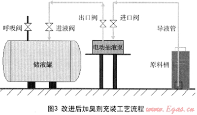 改進(jìn)后加臭劑充裝工藝流程見(jiàn)圖3。