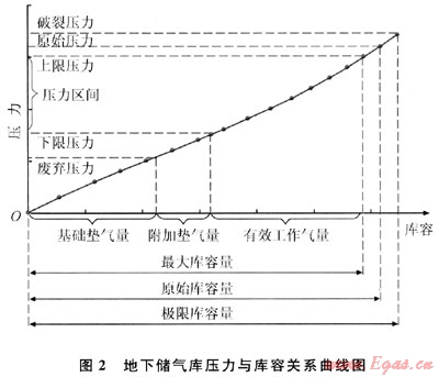 地下儲(chǔ)氣庫壓力與庫容關(guān)系見圖2。