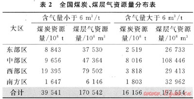 含氣量大于6m3/t是煤礦瓦斯爆炸的引發(fā)點(diǎn),以含氣量6m3/t作為界限,大于6m3/t的煤層氣資源量約為19.76×1012m3,占全國(guó)煤層氣資源量的54%,其煤炭資源量為1.62×1012t,僅占29%。如果以含氣量大于6m3/t作為實(shí)施“先采氣,后采煤”的界線(xiàn),既不影響“十一五”煤炭產(chǎn)量,又可遏制瓦斯災(zāi)害(表2)。
