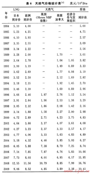 有人可能會說美國的天然氣價格比中國還低,這也是事實。這是因為天然氣不同于石油,沒有形成世界統一的價格,全球大致形成了亞太、歐洲、北美3大市場,亞太地區(qū)價格最高,歐洲較低,北美最低(表6)。不可能因為中國的生活水平低,就能得到廉價的天然氣,氣價是由市場決定的。