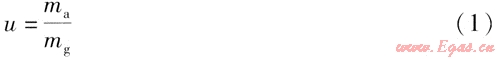 通過氣相色譜分析法分析出純?nèi)細(xì)夂鸵淮慰諝?燃?xì)饣旌蠚獾慕M成,即可計(jì)算出一次空氣系數(shù)和引射系數(shù)。