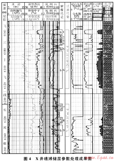 X井是四川盆地LG地區(qū)的一口探井,完鉆井深6530m。該井同時(shí)鉆遇下三疊統(tǒng)飛仙關(guān)組鮞灘和上二疊統(tǒng)生物礁儲(chǔ)層,由于鉆井速度太快,錄井未發(fā)現(xiàn)明顯的大段白云巖和生物礁,無(wú)油氣顯示,加上儲(chǔ)層埋藏較深,因此測(cè)井資料必須回答是否發(fā)育生物礁和鮞灘儲(chǔ)層?產(chǎn)氣還是產(chǎn)水?并要求提交較為精確的儲(chǔ)層參數(shù)。