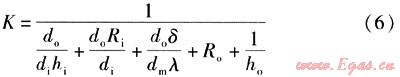 熱負荷確定后,可由總傳熱速率方程(1)求得換熱面積。其中總傳熱系數(shù)為: