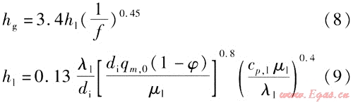 式中hg——管內(nèi)兩相流表面?zhèn)鳠嵯禂?shù),W/(m2·K)