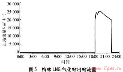 ④ 需求的最大小時流量超過目前上游合同中規(guī)定的最大小時提氣速率,可采用增購短期合同氣來增加小時提氣速率;同時利用梅林LNG氣化站和大工業(yè)區(qū)LNG氣化站的調(diào)峰功能,降低高峰時段門站的提氣速率。