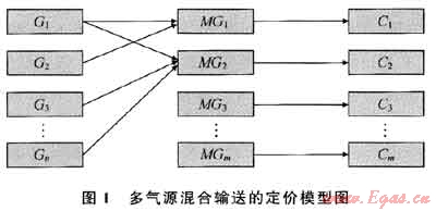中國天然氣市場(chǎng)已進(jìn)入高速發(fā)展階段,自2000年以來,國內(nèi)天然氣產(chǎn)量年均增長高達(dá)13.7%[1]。據(jù)中國石油和化學(xué)工業(yè)協(xié)會(huì)統(tǒng)計(jì),中國天然氣消費(fèi)量2009年消費(fèi)量為874.5×108m3,同比增長11.5%,2009年產(chǎn)量為830×108m3,增長7.7%,2010年1-7月國內(nèi)天然氣產(chǎn)量同比增長9.8%,達(dá)532×108m3(國家統(tǒng)計(jì)局?jǐn)?shù)據(jù))。國內(nèi)能源結(jié)構(gòu)中,目前天然氣比例不到4%,遠(yuǎn)低于世界24.1%的平均水平,按國家能源局的規(guī)劃,未來的20a里,天然氣在能源結(jié)構(gòu)中的比重將提高到8.0%以上[2],天然氣需求將達(dá)到4000×108m3,多種途徑不同氣源的天然氣將大規(guī)模進(jìn)入中國。市場(chǎng)建設(shè)方面,以西氣東輸和川氣東送等主干網(wǎng)為基礎(chǔ),各支線為輔,國內(nèi)天然氣逐步形成了東北、環(huán)渤海、華東、中南、華南、西南、西部等區(qū)域市場(chǎng)[3]。因此,多氣源供應(yīng)將成為天然氣市場(chǎng)的常態(tài),多氣源混合輸送的定價(jià)問題將成為天然氣市場(chǎng)的焦點(diǎn)問題。