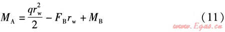 按強度條件確定活動支架A、B的最大允許間距rw,max,必須考慮最不利情況。以r1為變量對式(12)求極值,可求得到當r1=0時MA取得最大值,即: