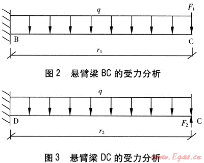 F2——轉(zhuǎn)角c處約束力對懸臂梁DC的作用力,N