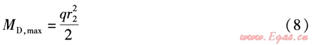 由式(5)、(6)可知,當r2≥r1時,MD≥MB。因此,只要活動支架D處管道滿足強度條件,活動支架B處的管道必然滿足強度條件。將式(4)代入式(6),得到: