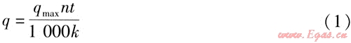 根據(jù)GB 50015—2003《建筑給水排水設(shè)計規(guī)范》和地?zé)崴?yīng)洗浴用水的特點,對洗浴用水供水系統(tǒng)設(shè)計計算以及水溫、水量、水質(zhì)進行確定。確定洗浴用水的供水溫度為45℃,最高日用水定額為40L/(人·d)。全日制供水系統(tǒng)的年洗浴熱水用量q的計算式為: