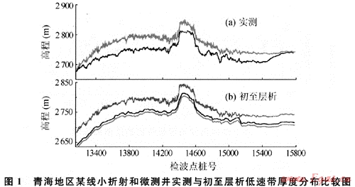 然而,利用初至波層析反演的近地表結(jié)構(gòu)和實際測量的近地表結(jié)構(gòu)相比較,其結(jié)果又如何呢?從圖1可以看到,除測線兩端附加段是外推的、誤差比較大以外,實測厚度與層析結(jié)果大體相當。