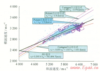 圖1 經(jīng)驗(yàn)公式與實(shí)測縱、橫波數(shù)據(jù)關(guān)系圖