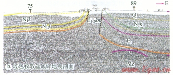 阿瓦特段北起北部構造帶,向南推覆到溫宿凸起之上,形成阿瓦特膏鹽巖推覆體。