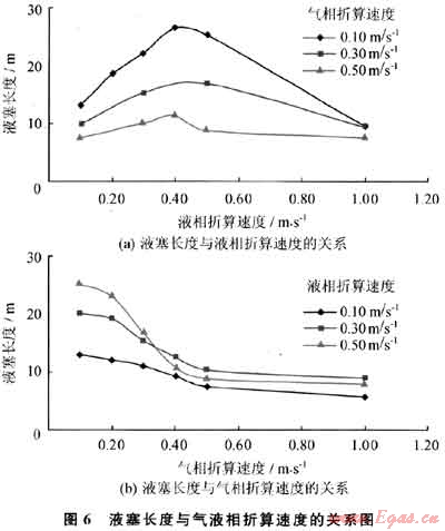 根據(jù)單壓力信號法計(jì)算可得到液塞長度[14]。圖6為液塞長度與氣液相折算速度的關(guān)系圖。
