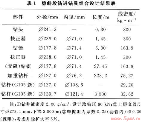 穩(wěn)斜段鉆進鉆具組合設計結果如表1所示。