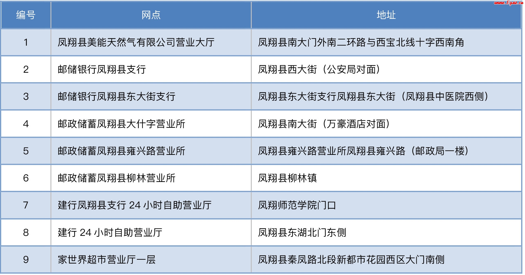 鳳翔縣美能天然氣公司售氣網(wǎng)點(diǎn) 0917-7230388