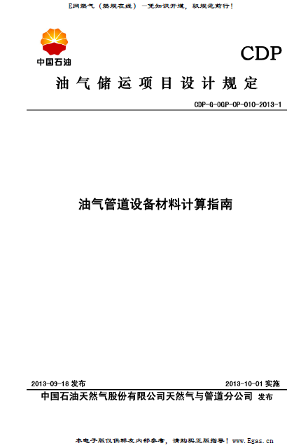 本文件適用于陸上新建油氣管道工程設(shè)備、材料的計算,改擴建油氣管道工程設(shè)備、材料的計算可參照執(zhí)行。