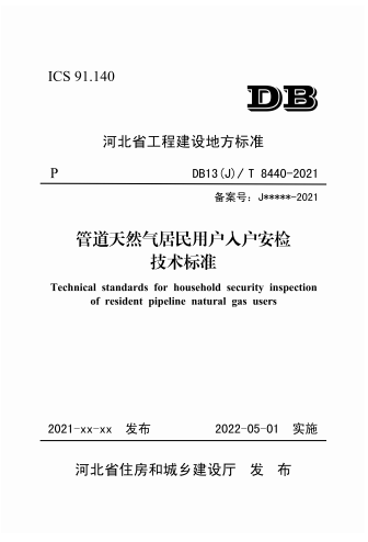 《管道天然氣居民用戶入戶安檢技術(shù)標(biāo)準》DB13(J)/T8440-2021