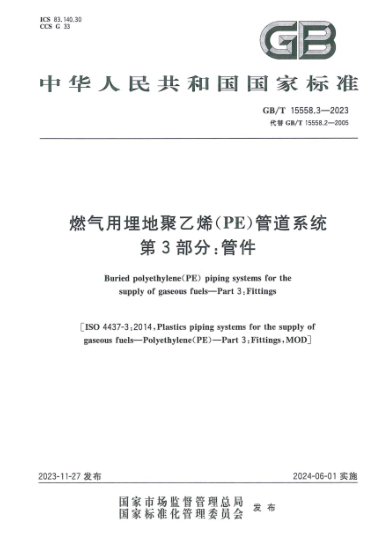 燃?xì)庥寐竦?a href=http://m.shudonglove.com/e/tags/?tagname=%E8%81%9A%E4%B9%99%E7%83%AF target=_blank class=infotextkey>聚乙烯(PE)管道系統(tǒng) 第3部分:管件GB/T 15558.3-2023