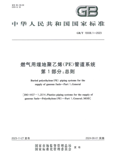 燃氣用埋地聚乙烯(PE)管道系統(tǒng) 第1部分:總則GB/T 15558.1-2023