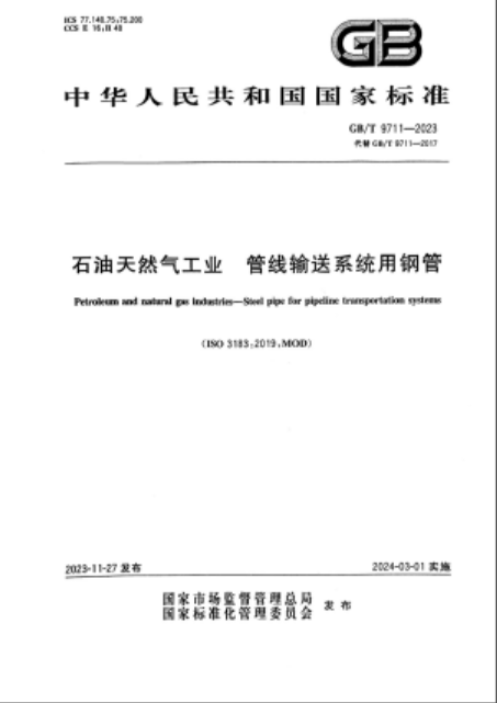 石油天然氣工業(yè) 管線輸送系統(tǒng)用鋼管國標(biāo)/T 9711-2023
